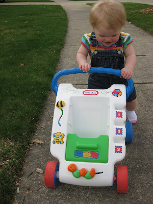Despite her midnight demands for attention, Erin is such a good baby. I know...I'm supposed to say that, right? But really--she's about as easy-going as babies get. She smiles, laughs, experiments, eats. All with David's laid-back nature. The getting-sick-all-the-time thing is kind of a drag (thanks, daycare!) but really--no complaints. She's crawling up the stairs all by herself now (with momma arms about 2 inches away, of course) and I know she'll be walking any day now... Snif.